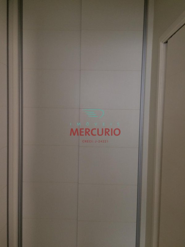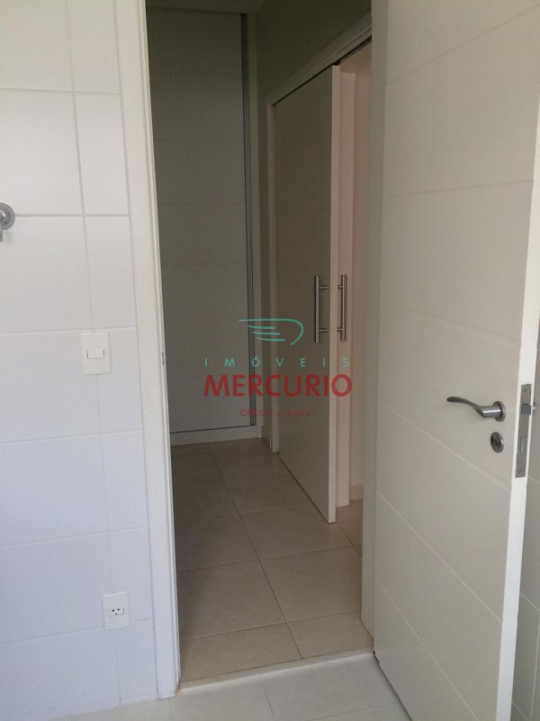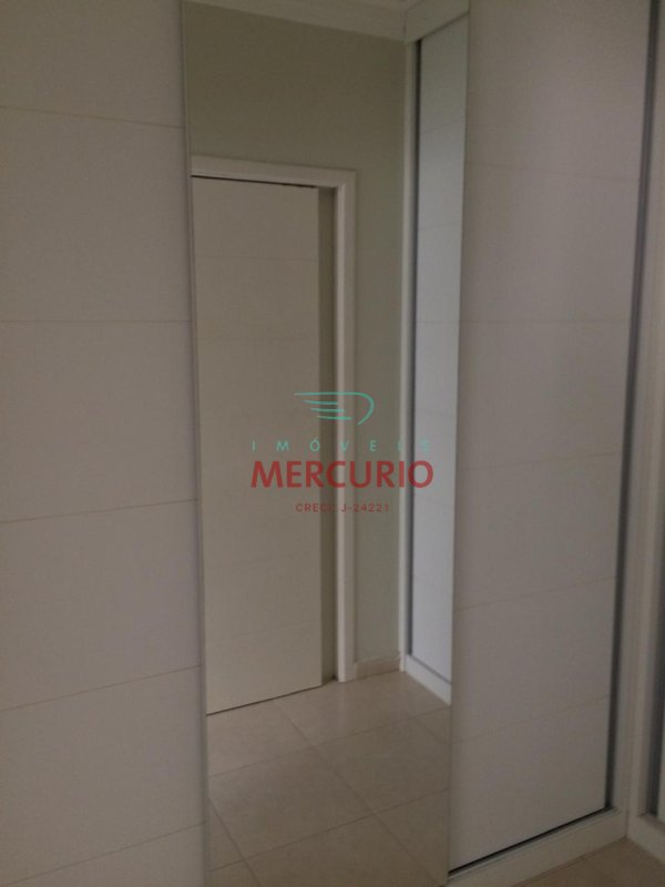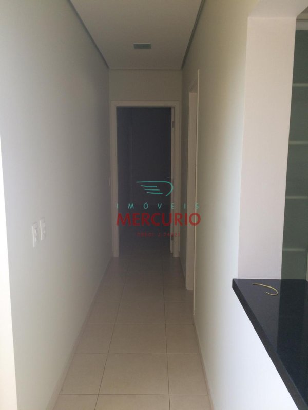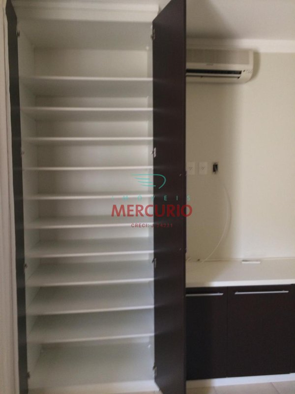 Armários de alvenaria com portas em alumínio nos corredores.